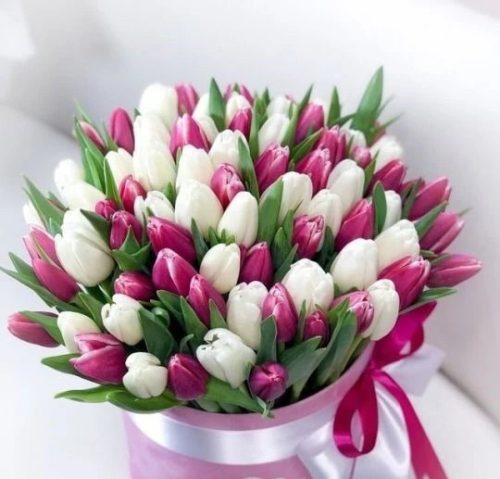 – Bármilyen alkalomra, ahol a lila, rózsaszín és fehér tulipánok harmonikus kombinációja tökéletes választás